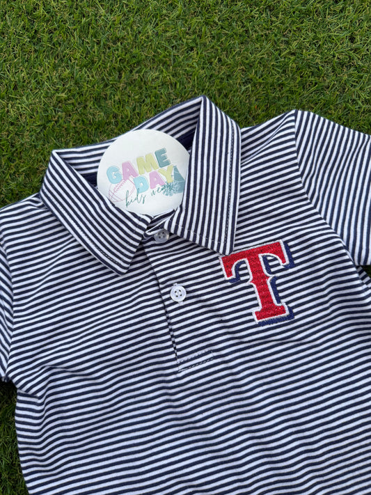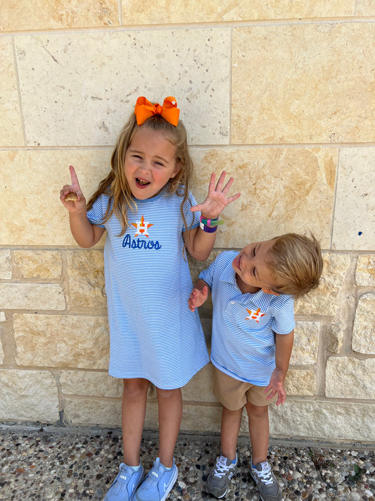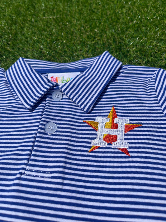 Polo Royal Blue Striped Short Sleeve- Astros Orange Logo