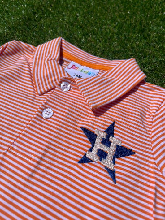 Polo Orange Striped Short Sleeve- Astros Blue logo