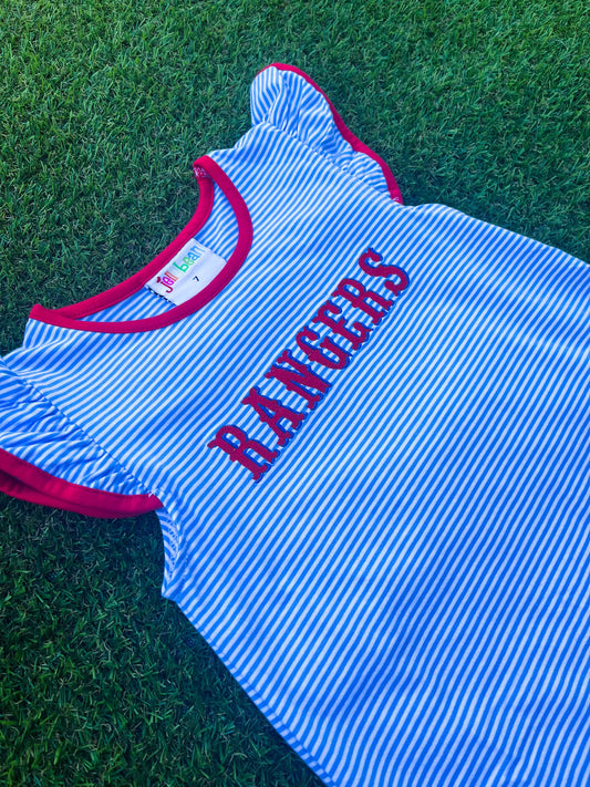 Fluttersleeve Stripe Dress- Red and Blue with Rangers
