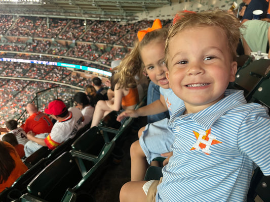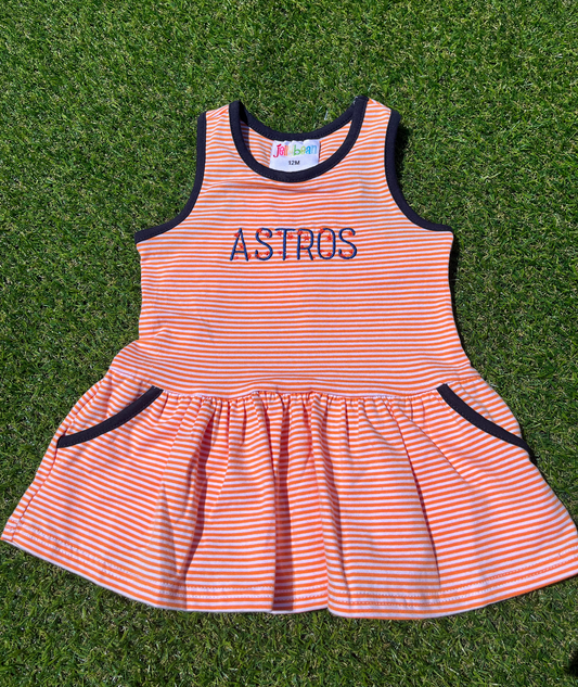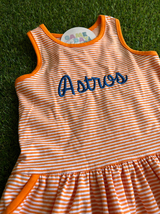 Polo Cornflower Blue Striped Short Sleeve- Astros orange logo