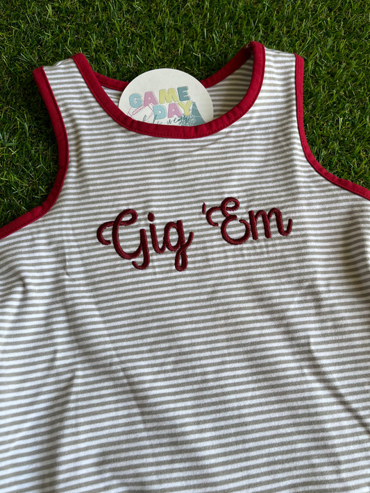 Sleeveless Bow Back Dress- Gray and Maroon with Gig Em