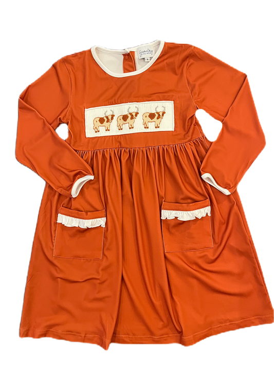 Smock Longhorn Longsleeve Pocket Dress